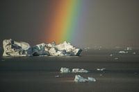 De zon was bezig aan zijn lange weg naar beneden. Een donkere lucht was bezig met het verzwelgen van de hemel boven het ijsmeer. De laatste zonnestralen braken door het wolkendek en toverde nog even het complete kleurenspectrum boven de ijsbergen van Jökulsárlón