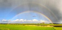 Dubbele regenboog tijdens een hagelbui boven de IJssel bij het dorp Zalk.