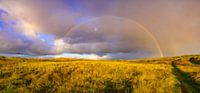 Regenboog in de duinen op het eiland Texel in het Waddenzeegebied in het noorden van Nederland tijdens een stormachtige herfstochtend.