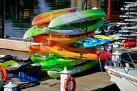 Terwijl we rondzwierven op Granville Island in Vancouver, Canada, kwamen we deze kleurrijke werf tegen die kajaks verhuurde. Helaas niets voor ons, maar het leverde wel een mooi en kleurrijk plaatje op.