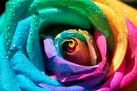 Elk rozenblaadje op een regenboog roos heeft zijn eigen kleur waardoor ze samen een prachtige regenboog roos vormen.