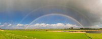 Regenboog tijdens een regen- en hagelbui boven de IJssel bij Zwolle in Overijssel, Nederland.