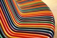 Kleurrijk object (bank), gefotografeerd in Berlijn, Duitsland.