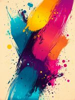 Dit abstracte kunstwerk combineert felle kleuren zoals blauw, roze, geel en groen in een levendige, levendige voorstelling. De kleuren lijken in alle richtingen te stromen, waardoor de afbeelding er dynamisch en energiek uitziet. De lichte achtergrond zorgt voor een duidelijk contrast en benadrukt de helderheid van de kleuren. Een…