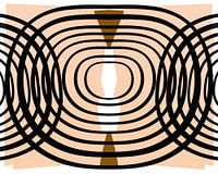 Een abstract schilderij van geometrische vormen in warme roze en beige kleuren zoals bruin, beige, crème, goud en andere met een Scandinavische Scandinavische uitstraling.