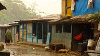 Een regenbui in het kleine dorpje Bahanunda onderaan het Annapurna gebergte in de Himalaya, Nepal.