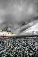 Koop de foto Regenbuitje boven de haven van Harlingen van Harrie Muis op canvas, aluminium dibond, (ingelijste) fotoprint, behang en ArtFrame, op maat geprint in Fine-Art kwaliteit.