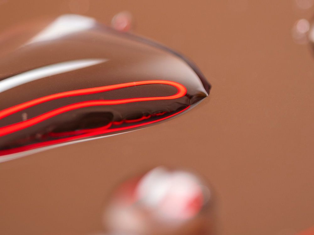 Regendruppels met rode kleur en licht