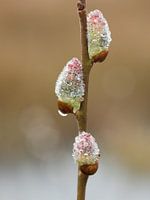 Op een Regendag in het vroege voorjaar, zaten de Katjes bloesems onder de regendruppels