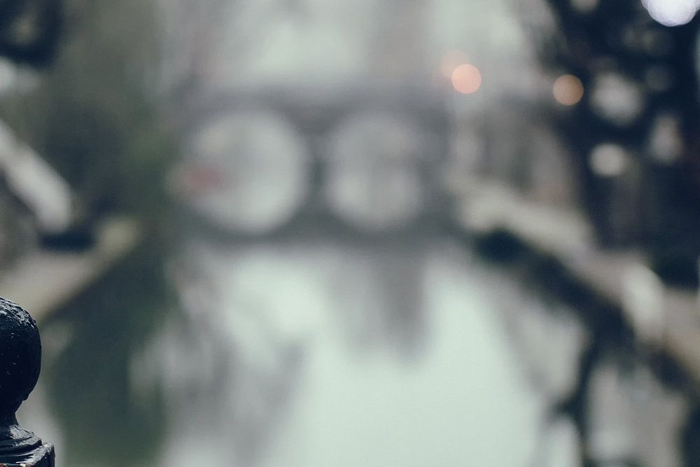 Over ‘Regendruppels op de reling van de Weesbrug in Utrecht ovder de Oudegracht’ van André Blom Fotografie Utrecht