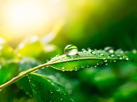 Koop de illustratie Regendruppels op een blad van Mustafa Kurnaz als print op canvas, aluminium dibond, (ingelijste) fotoprint, behang en ArtFrame. Voor jou op maat geprint in Fine-Art kwaliteit.
