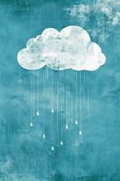 Een zachte wolk zweeft in een kalme, blauwgrijze lucht en laat glinsterende druppels achter zich. De zachte, bijna etherische vorm straalt een vredige melancholie uit, terwijl de vallende regenbolletjes zachtjes de achtergrond raken. Het contrast tussen de delicate wolk en de diepe achtergrond creëert een rustgevende sfeer die uitnodigt om te dromen.