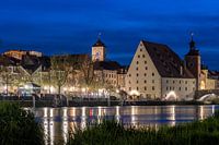 Op de achtergrond zie je het historische Salzstadl en de Stenen Brug over de Donau met de brugtoren.
