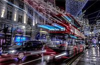 Regent Street Londen rond de kerst met uiteraard een karakteristieke dubbeldekker als onderwerp.