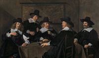 Dit waren vijf bestuurders van het Elisabeths Gasthuis. Enkele voorwerpen op de tafel, zoals een inktstel en boek, wijzen op hun bestuurlijke taken. De regenten zijn waardige en serieuze mensen. Hun kleding is sober zwart, passend bij hun functie in een liefdadigheidsinstelling. Dit is het eerste Haarlemse regentenstuk. Afgebeeld zijn Siewert Sem Warmont, Salomon Cousaert, Johan van Clarenbeeck, Dirck Dirckz Del en François Wouters. Zij waren regent vanaf 1638.