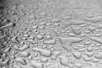 Water van regendruppels na een zware regenbui bij slecht weer op een glanzend oppervlak van metaal