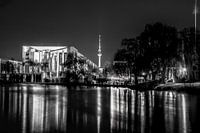 Regeringswijk Zicht op de televisietoren Alexander gezien vanaf de oever van de Spree
