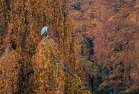 Reiger rust op tak hoog in een prachtige treurbeuk.