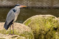 Het is duidelijk dat de vogel geduldig wacht, zijn poten stevig in de rots geklemd, terwijl hij wacht op een prooi die binnen zijn bereik zou kunnen komen. Het is een moment van stilte, waarin de tijd lijkt stil te staan. De reiger, een expert in geduld en precisie, is zich bewust van zijn rol in dit ecosysteem. Zijn scherpe zintuigen stellen hem in staat om de kleinste bewegingen in het water waar te nemen, altijd klaar om toe te slaan wanneer de kans zich voordoet. Het beeld van de reiger straalt zowel kalmte als vastberadenheid uit, een prachtig voorbeeld van de rust en de kracht die in de natuur te vinden zijn, en de eindeloze cyclus van wachten en jagen die het leven van deze elegante vogel kenmerken.