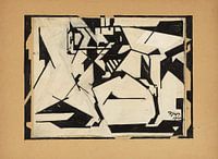 Man op zijn paar rijd naar links in een abstract kunstwerk met zwart en wit.