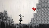 Dit kunstwerk straal aan de linkerzijde verwoeste gebouwen aan en aan de rechterzijde nog intacte gebouwen. Het meisje maakt een reikend gebaar naar de rechterzijde. Een gebaar dat het meisje een normaal leven wil lijden zonder oorlog.