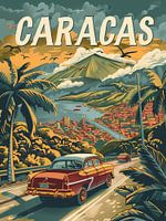 Ontdek de hartslag van Venezuela met deze opvallende Caracas-reisposter. Op het kunstwerk zie je een klassieke auto slingeren over wegen met palmbomen die uitkijken over de bruisende stad, bergen in de verte en een stralende lucht geschilderd in de kleuren van de zonsondergang. Vogels zweven boven mistige bergtoppen en creëren een sfeer die zowel avontuurlijk als sereen aanvoelt. De levendige illustratie mengt op meesterlijke wijze het stedelijke landschap van Caracas met de omringende natuurlijke schoonheid. Of je nu een fan bent van de Latijns-Amerikaanse cultuur, vintage auto's of dramatische uitzichten, deze print creëert een uitnodigend middelpunt in elke kamer. Ideaal voor woonkamers, creatieve studio's of kantoren, het roept direct verhalen op van verkenning, warme avonden en de mix van stad en natuur die Caracas onvergetelijk maken. Voeg een levendige, tropische sfeer en een gedurfd visueel statement toe aan je collectie met een kunstwerk dat Venezolaanse reizen en de allure van de levendige straten en het landschap van de stad viert.