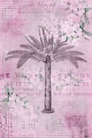 Nostalgische collage met palmboom en tekstelementen in roze pasteltinten
