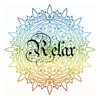 digital art. Mandala in regenboogkleuren met het woord Relax er middenin. Chakra in meerdere kleuren