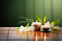 Een heerlijk rustige sfeer om te ontspannen, te mediteren en gewoon te genieten. Een scène uit een wellnessoase, een idyllische time-out of gewoon alleen in de natuur. Ervaar holistische regeneratie met al je zintuigen. Gemaakt in samenwerking met kunstmatige intelligentie.