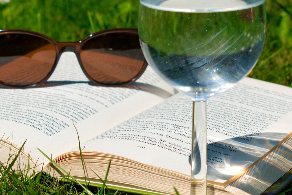 het begin van een luie vakantie, lezen, drinken en zon. kortom genieten vaan de rust en de eenvoud.