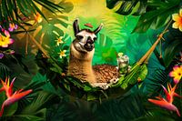 Ontsnap naar een tropisch paradijs met dit humoristische en levendige ontwerp. Een relaxte lama, compleet met een tropisch drankje, rust in een hangmat omgeven door weelderige jungleplanten en kleurrijke bloemen. Dit vrolijke kunstwerk is perfect om een vleugje humor en kleur toe te voegen aan je interieur. Ideaal voor dierenliefhebbers…
