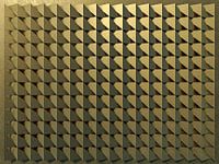 Door het repeteren van een relatief eenvoudige vorm ontstaat een intrigerend patroon van in elkaar grijpende vlakken.