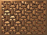 Door het spiegelen, roteren en kopiëren van een relatief eenvoudige vorm ontstaat een intrigerend patroon van ruiten en…