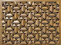 Door het spiegelen, roteren en kopiëren van een relatief eenvoudige vorm ontstaat een intrigerend patroon van ruiten en driehoeken.