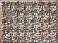 Door het roteren en kopiëren van een relatief eenvoudige vorm ontstaat een fascinerend patroon dat de suggestie wekt van een stad of dorp, met een aaneenschakeling van schuine daken.