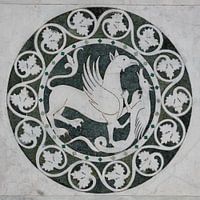 Reliëf op de Sint Martin Kathedraal in Lucca, Toscane, Italië