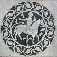 Reliëf van Ruiter op paard op de Sint Martin Kathedraal in Lucca, Toscane, Italië