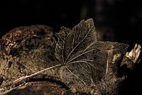 Wat overblijft van een esdoornblad , enkel de nerven resteren en geven het iets van Brugs kant