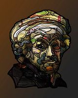 Digitale collage van supermarktverpakkingen naar voorbeeld van een van de Rembrandt zelfportretten
