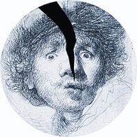 Een rond ontwerp van een van Nederlands meest bekende schilders: Rembrandt, uitgewerkt in Nederlands bekendste aardewerk: Delfts blauw. Oude meester met een twist.