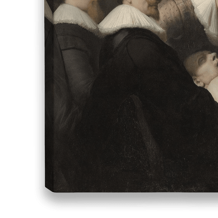 Rembrandt beeldde de chirurgijns in actie af – ze kijken allemaal ergens anders naar. De voorstelling krijgt extra dynamiek door het grote licht-donkercontrast. De jonge schilder toonde met dit groepsportret zijn fabelachtige schildertechniek en zijn grote talent om levendige portretten te schilderen.