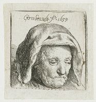 Deze oude vrouw komt al voor op de eerste etsjes die Rembrandt maakte. Ze is vrijwel zeker zijn moeder, Neeltgen Willemsdr van Zuytbroeck. Op de twee versies uit 1628 is ze 60 jaar oud. Het zijn echt studies van haar gegroefd gelaat. Ze zijn zó gedetailleerd getekend, dat je je kunt voorstellen dat de jonge Rembrandt direct voor haar op zijn koperplaatje zat te zwoegen.
