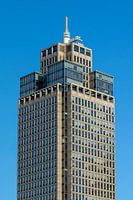 Dit werk toont de Rembrandttoren tegen een strakblauwe lucht. De wolkenkrabber is met zijn hoogte van 135 meter het hoogste gebouw van Amsterdam.