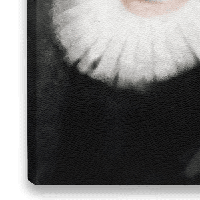 Impressionistisch portret van een rebels meisje met grote plooikraag en choker in Renaissance stijl.