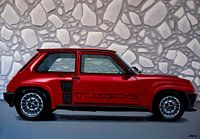 Realistisch acrylschilderij van de Renault 5 Turbo 2 uit 1980, geschilderd door de Nederlandse beeldend kunstenaar Paul Meijering - Het originele schilderij is 90 x 120 cm en te koop