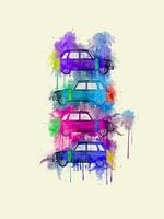 Kunst van 4 x een Renault 6 in aquastijl.