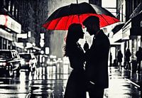 Jaren later, wordt hun verhaal nog steeds verteld, met de rode paraplu als blijvend icoon in de hal van hun gedeelde leven. Vervaagd en misschien niet langer bestand tegen de regen, maar onmogelijk weg te doen. Het staat als een stille getuige van dat ene moment dat alles veranderde, van een eerste date die uitgroeide tot een levenslange reis samen.