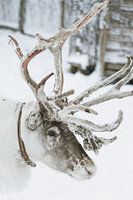 Koop de foto Rendier in de sneeuw in winters Lapland, Finland van Suzanne Spijkers als print op canvas, aluminium dibond, (ingelijste) fotoprint, behang en ArtFrame. Voor jou op maat geprint in Fine-Art kwaliteit.