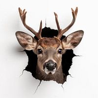 Het Rendier uit de muur schilderij combineert kunst met een speelse twist en is perfect voor liefhebbers van natuur, dieren en gedurfd design. Een stijlvolle fotoprint die sfeer en persoonlijkheid toevoegt aan elke ruimte, en die door zijn unieke karakter gegarandeerd gespreksstof oplevert.