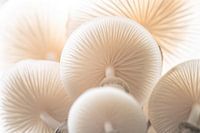 Macro opname van de onderkant van porseleinzwammen. De zwammen groeien op de stam van een boom.